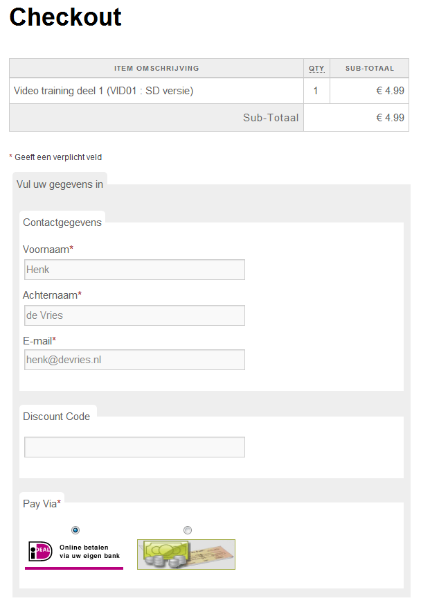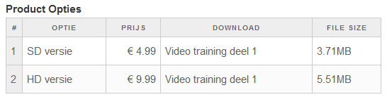 Als er nu naar de pagina met het ingestelde product wordt gegaan verschijnt onderaan de pagina de mogelijkheid om het product aan de winkelwagen toe te voegen. Na de checkout en betaling ontvangt de koper een email met een download code.