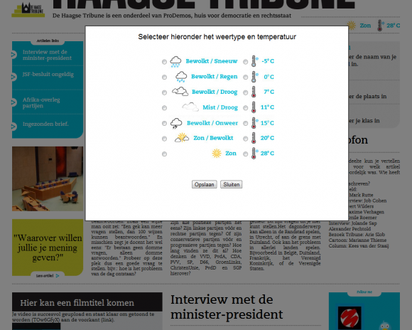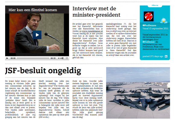 Voor ProDemoshebben wij onze krantentool voor het maken van een printbare krant ingezet. De vraag was om voor het dagprogramma 'De Haagse Tribune' een online platform te creëren waarin leerlingen en studenten als verslaglegging van de dag een online krantenpagina kunnen realiseren.