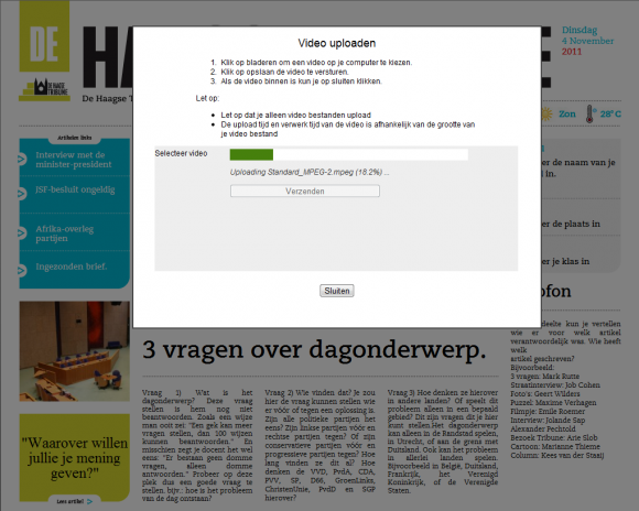 Op basis van de zelfkrantmaken-tool, waarbij je eenvoudig de teksten en koppen kunt wijzigen, hebben wij voor deze implementatie een aantal extra onderdelen gerealiseerd. Zo is het mogelijk om een Twitter-account in te geven, waarna de laatste tweets van deze twitteraar direct worden getoond. Ook de gemaakte video van die dag kan direct worden geupload en bekeken. Zoals bij elke website van een krant kan er een carousel worden gevuld met een aantal koppen en afbeeldingen met de headlines van de krant!