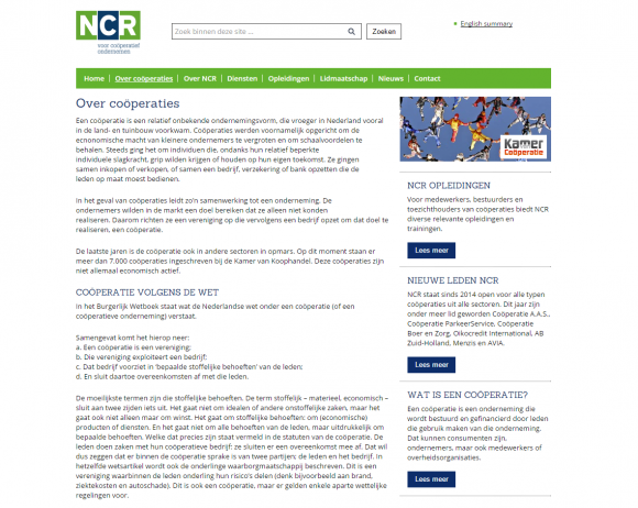 NCR is de vereniging van en voor coöperaties in Nederland. Samen met hun leden versterken ze het coöperatief ondernemerschap in Nederland.