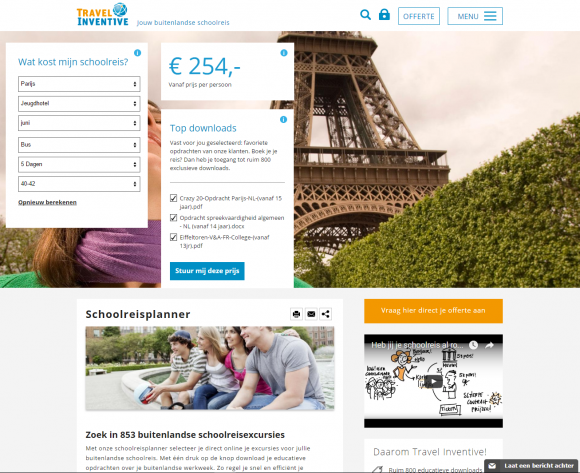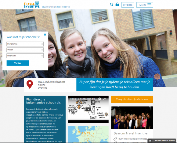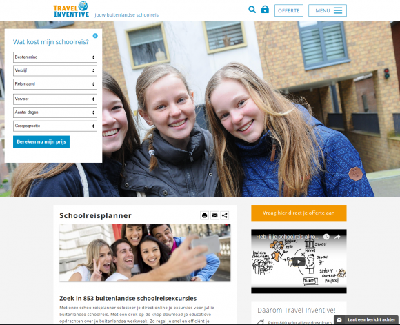 Aangezien Travel Inventive altijd op op zoek is naar vooruitgang en ontwikkeling, heeft de website in 2016 een redesign gekregen en is de Schoolreisplanner geïntegreerd binnen deze website, waardoor alles onder één dak zit. Met de schoolreisplanner selecteer je direct online in ruim 850 buitenlandse schoolreis excursies. Met één druk op de knop download je educatieve opdrachten over je buitenlandse werkweek. Zo regel je snel en efficiënt je schoolreis programma.