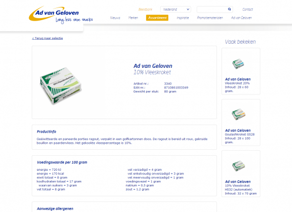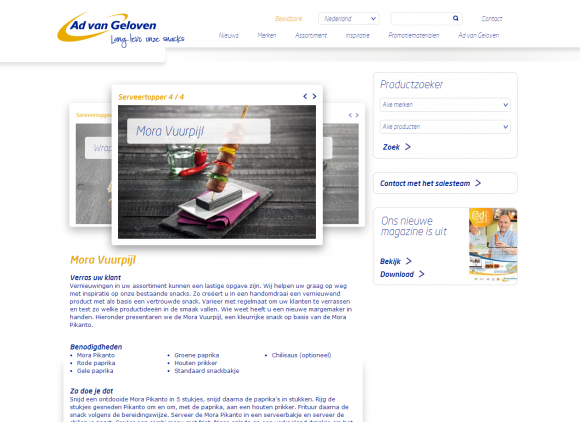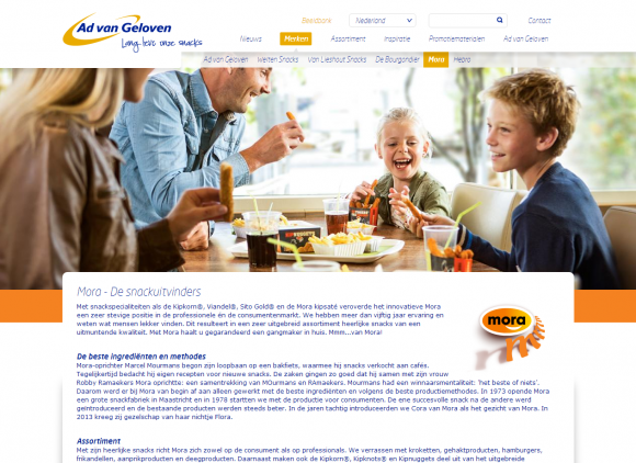 Het draait allemaal om kroketten, frikandellen, loempia's, kaassoufflés en bamischijven op de website van Van Geloven, lekkere, kwalitatieve en verantwoorde snackproducten. Mensen blij maken en verrassen met heerlijke snacks is hun missie en dit doen zij als een van de grootste snackproducenten met merken zoals Mora, van Lieshout Snacks, Hebro en De Bourgondiër.