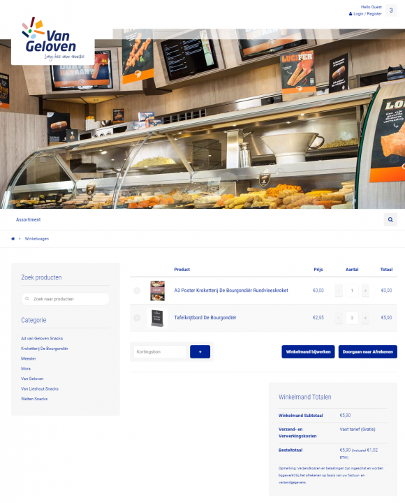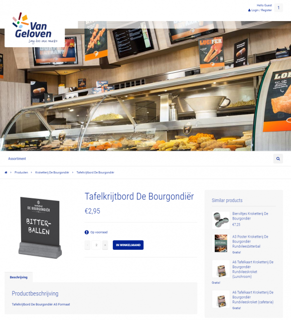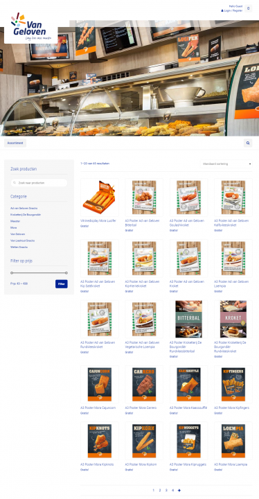 Binnen de POS webshop zit een zoekfunctionaliteit naar producten. Daarnaast kan je als friturist of snackbarhouder ook eenvoudig promotiemateriaal zoeken van specifieke snack merken als De Bourgondiër, Meester, Mora, Van Lieshout en Welten. Als klant kan je direct promotiemateriaal bekijken, bestellen en betalen. Naast de betalingskoppeling is er ook maatwerk verzorgd. Zo vindt er een automatische synchronisatie plaats met het voorraad beheer systeem van Van Geloven en worden de bestellingen direct doorgestuurd aan een fulfilment partij. Alle producten die op voorraad zijn, worden op deze manier binnen 5 werkdagen geleverd.